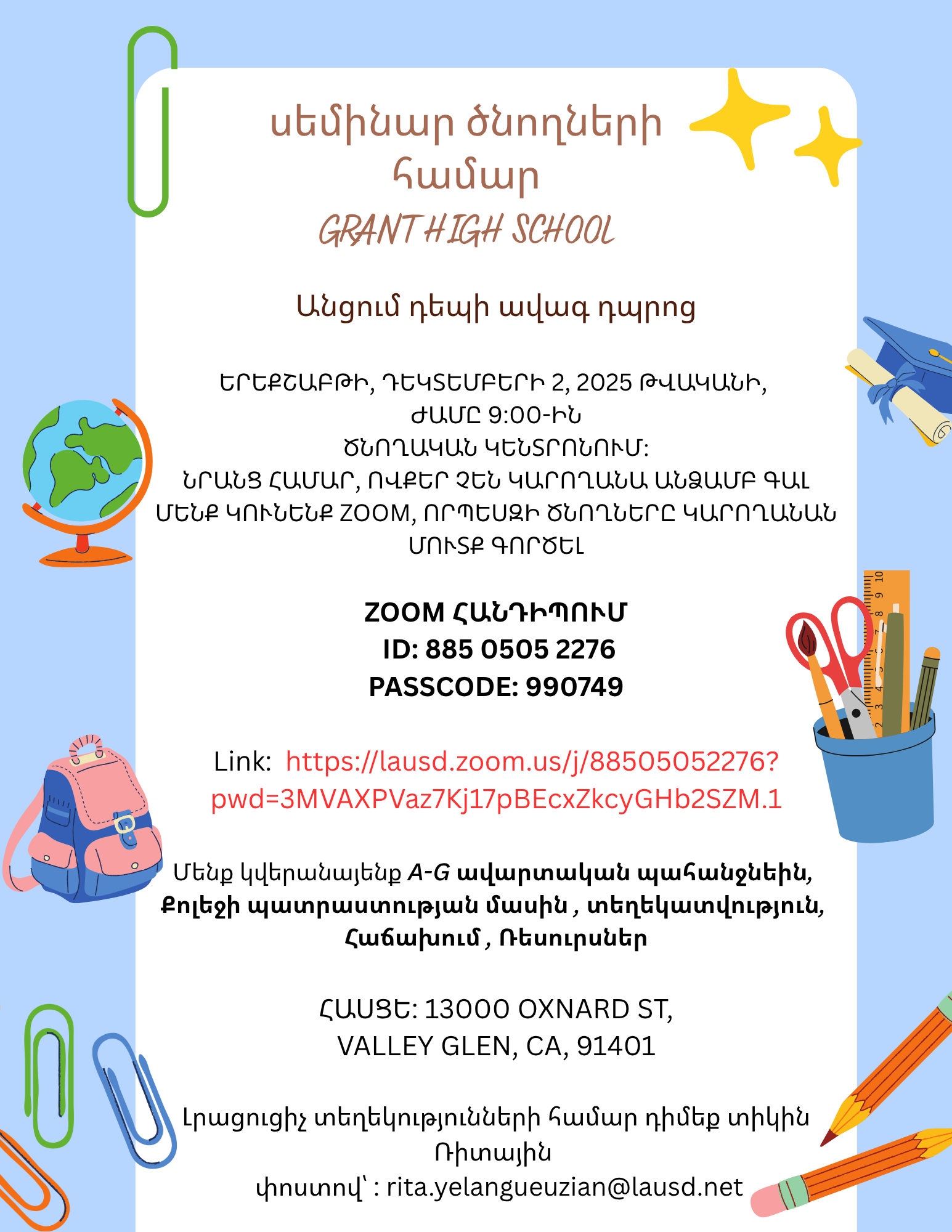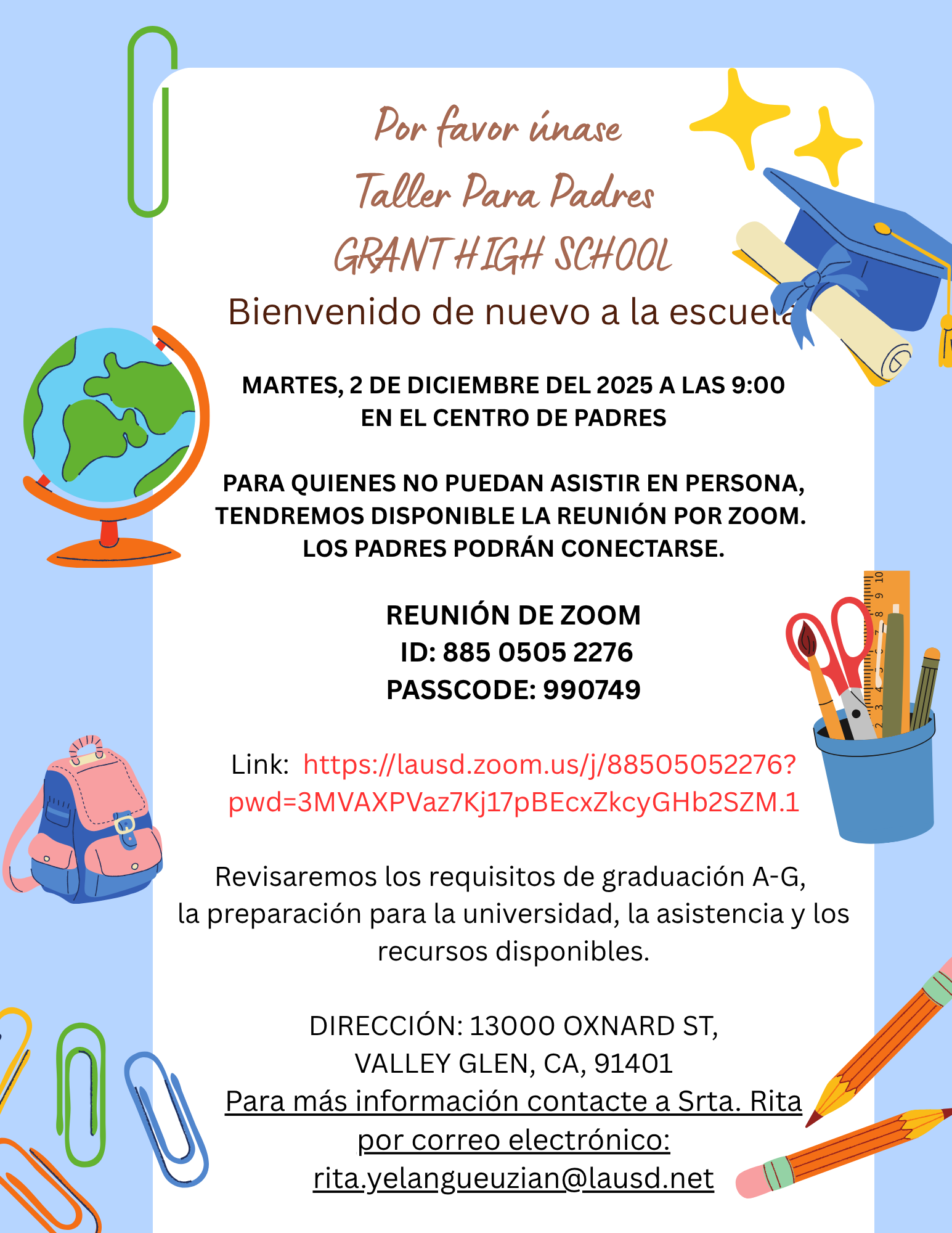 Parent Workshop: Transitioning to High School | Tuesday, Dec. 2, 2025, 9:00 AM at the Parent Center